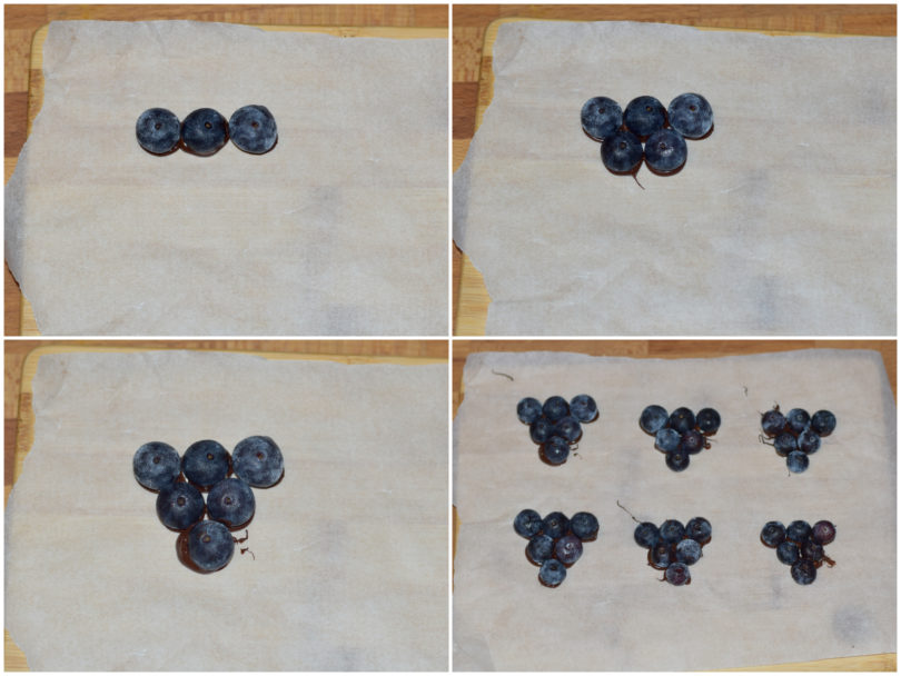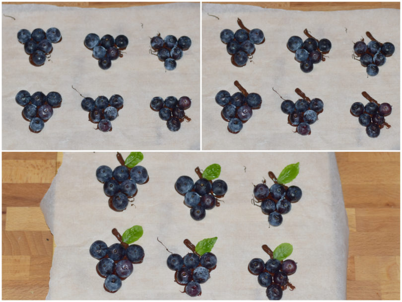 Posizionate i mirtilli in modo da formare dei mini grappolini di uva come ho fatto io.
