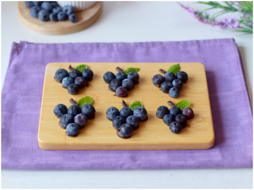 L'uva di mirtilli è un'idea sfiziosissima che ha catturato l'attenzione di molti sul web (io nello specifico l'ho vista qui). Questo dolcetto fresco e gustoso unisce la dolcezza dei mirtilli al sapore ricco e avvolgente del cioccolato fondente, creando un dessert irresistibile e facile da preparare. È ideale per chi cerca un'idea sfiziosa e veloce da servire come fine pasto o come spuntino goloso. La decorazione con il basilico aggiunge un tocco di freschezza e originalità, rendendo questo dolce non solo delizioso, ma anche bello da vedere. Perfetto per stupire i vostri ospiti con semplicità e stile. Praticamente dei mini grappolini di frutta e cioccolato, io li trovo geniali!