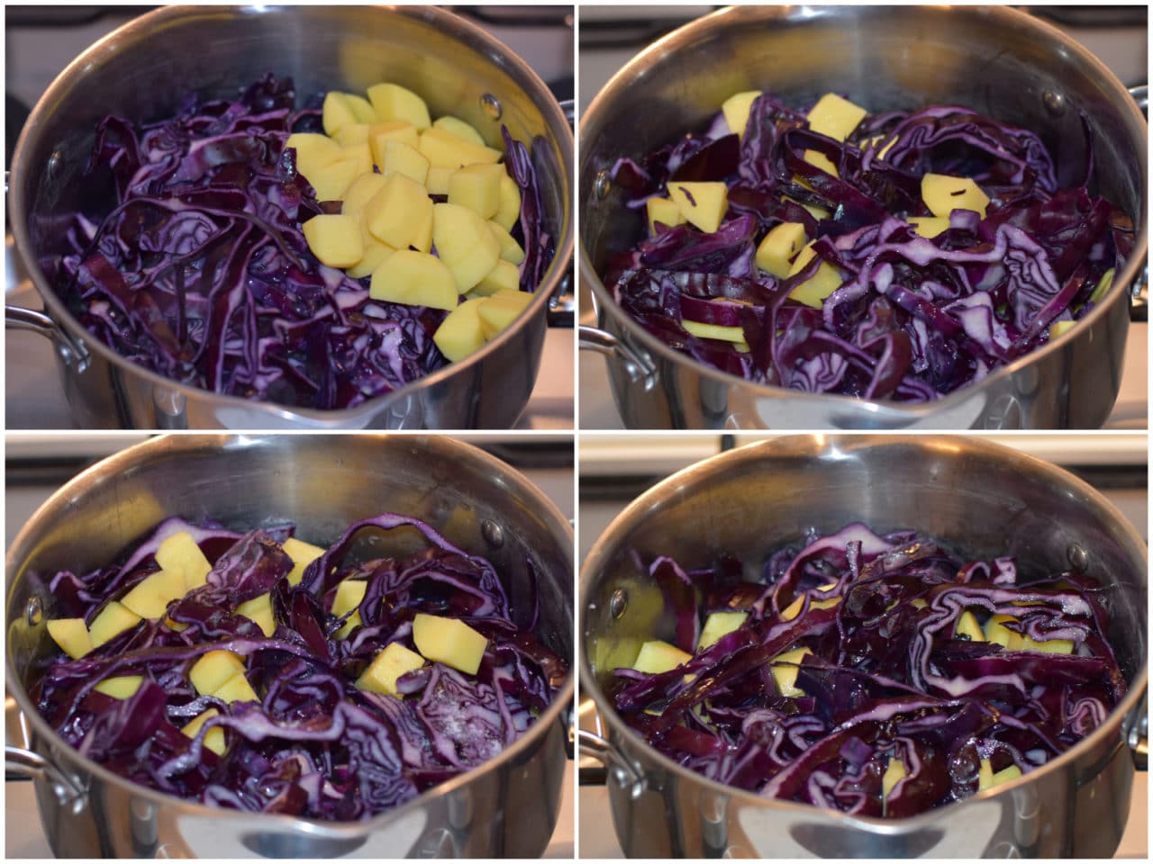 Innanzitutto mondate cavolo e patate e tagliate il primo a listarelle e le seconde a dadini.