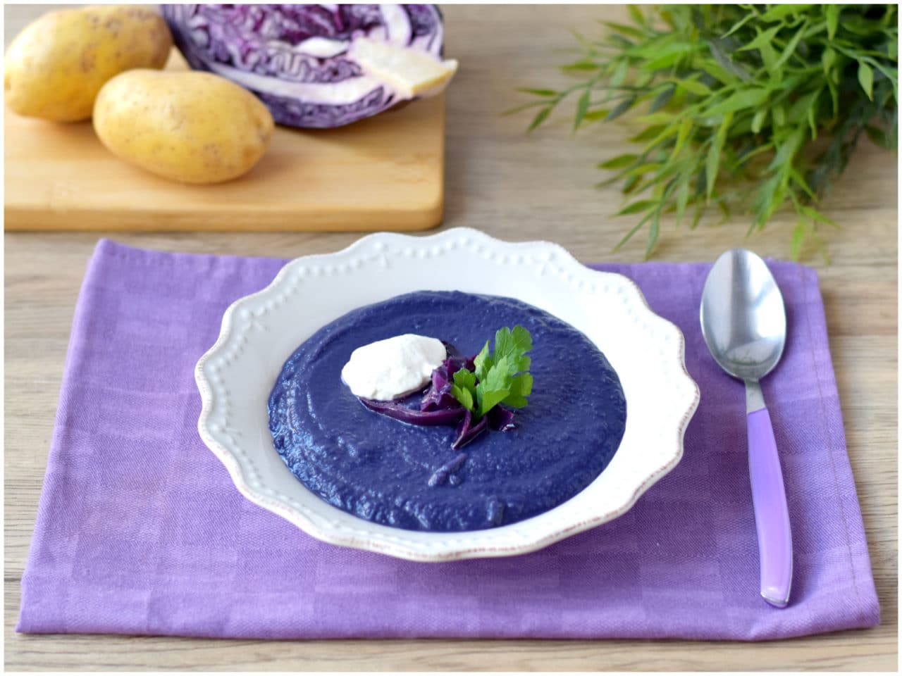 La vellutata di cavolo rosso è un primo piatto molto buono, soprattutto se servito con 1 cucchiaio di panna acida e magari qualche crostino di pane. Dovete sapere che il cavolo rosso ha una particolarità, che risiede nel suo contenuto di antocianine, responsabili appunto del colore caratteristico. La cosa bella è che queste reagiscono agli elementi acidi, per cui se aggiungerete qualche goccia di limone la vostra vellutata di cavolo rosso da viola diverrà rosa, quasi come per magia... provare per credere ;)