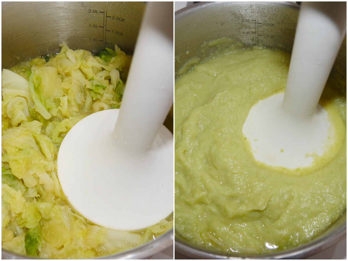 Quando le patate saranno belle morbide, frullate tutto con un minipimer e aggiustate di sale e (se volete) pepe.