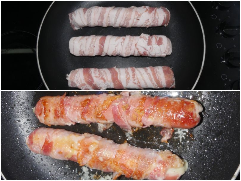 Questa ricetta è tanto semplice quanto buona, inoltre, l'idea di farcire i wurstel, avvolgerli nelle fette di bacon per poi cuocerli in padella ( ma nulla vi vieta di cuocerli al forno), è davvero originale, brava mamma!