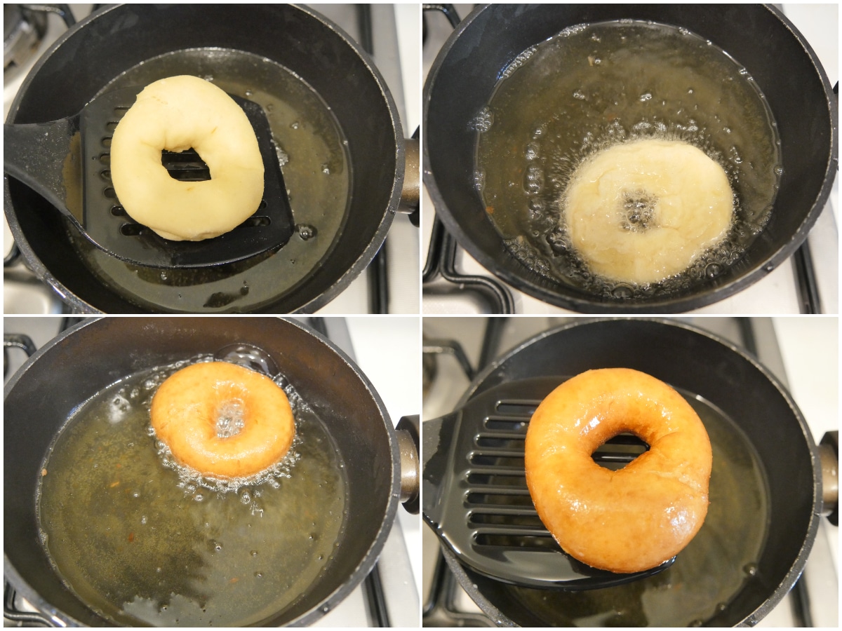 Passate le zeppole nella glassa, una per volta, ricoprendole interamente.