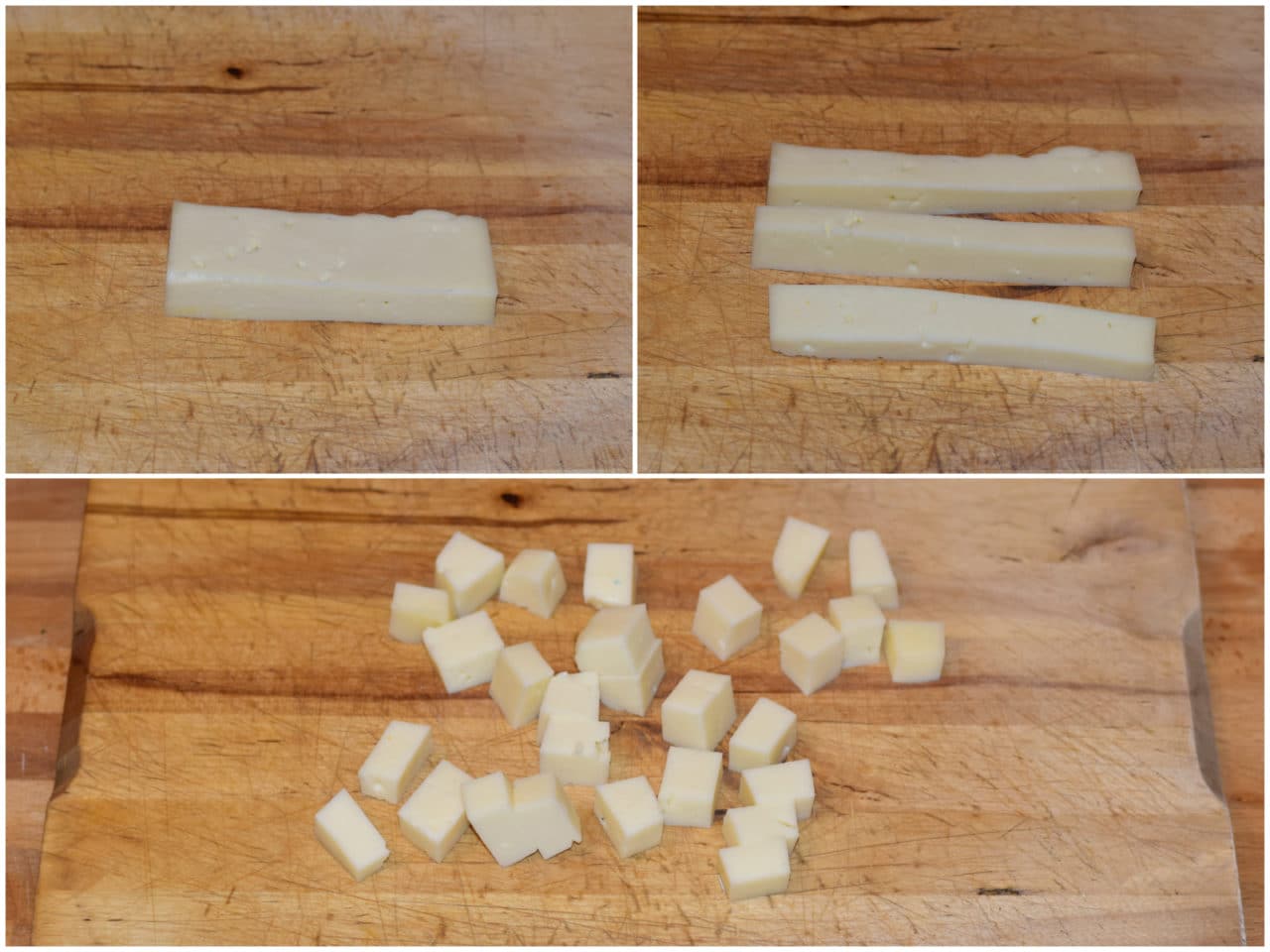 Tagliate il formaggio a cubetti e tritate grossolanamente le nocciole.