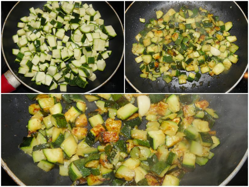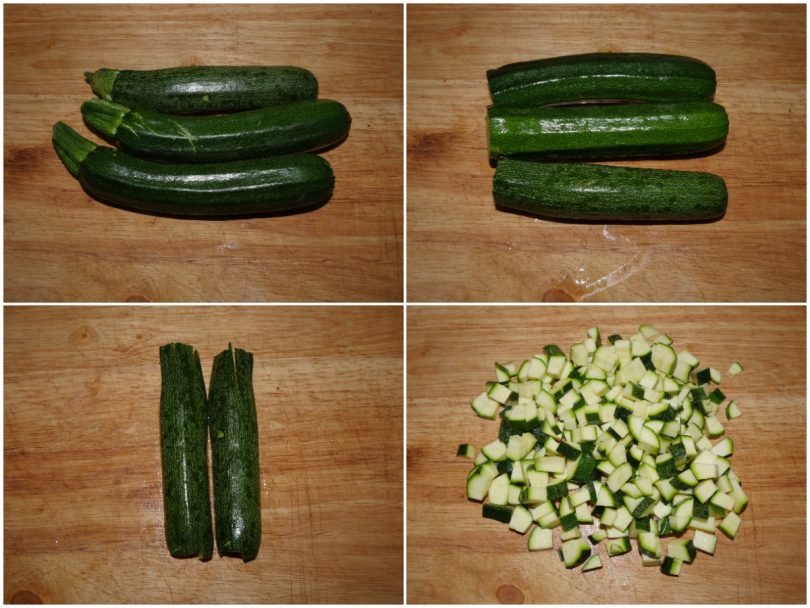 Innanzitutto lavate le zucchine, mondatele e tagliatele a cubetti.