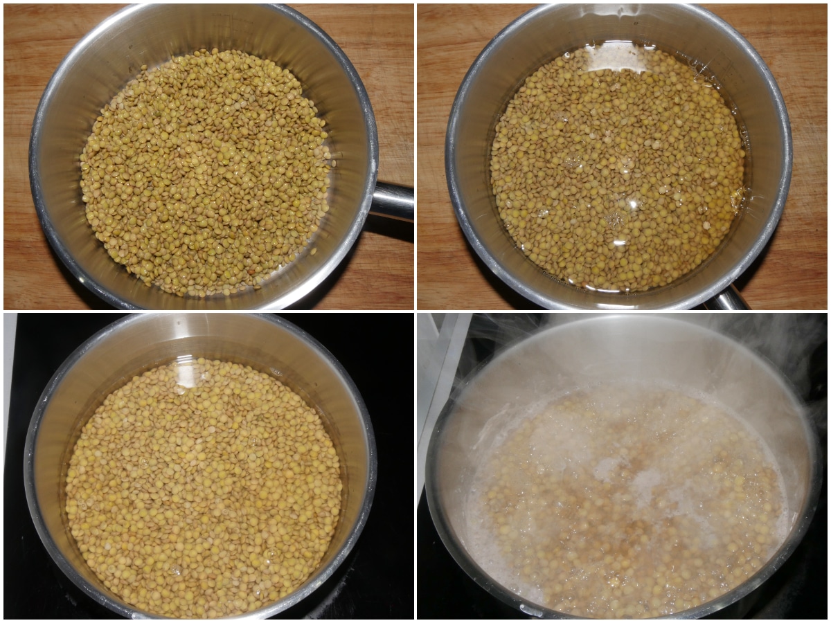Sciacquate bene le lenticchie e tenetele a bagno in acqua fredda per almeno 30 minuti.